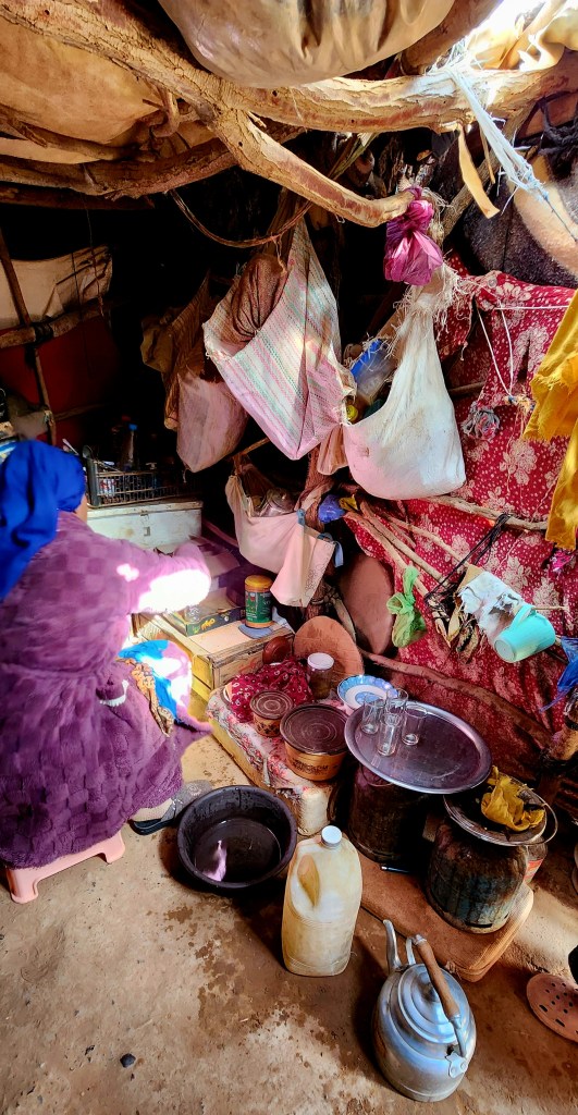 (My photo shows a woman preparing tea in the kitchen of the nomadic home.)